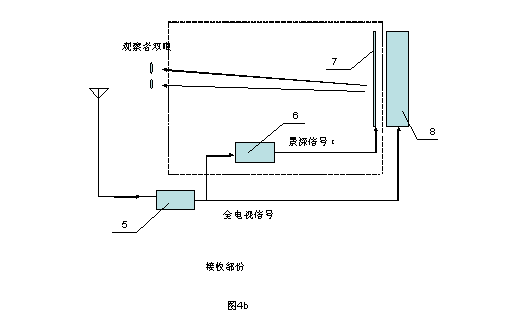 圖4b,新型立體電視系統(tǒng)的接收部份的框圖。其中虛線(xiàn)部份,即是在普通電視系統(tǒng)基礎(chǔ)上新增的部份。