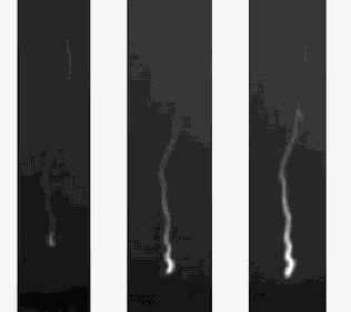 如圖2,是同一個(gè)閃電300倍慢放中的三個(gè)截圖。
