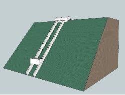 如上圖所示:軌道上建一滑動三角平臺,以牽引索與上方滑輪相接;滑輪設計成類似汽車無級變速式任意可調比例?;喠硪环娇拥乐芯Y以重物,來往車輛開上平臺后,上方滑輪調整比例使車輛加平臺重量形成斜面拉力與重物在另一端的滑輪調整后拉力大致相等。開動小功率電機,迅速把車輛拉上山頂,鎖定纜索滑輪另一端重物有所下降。相反車輛下山時反向操作即可,這樣就通過滑輪和重物把車輛來回的能量相互轉換,完成幾乎不耗爬山能量的運輸交通,只付出很小部分摩擦阻力的功。和平路一樣。