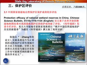 我們工作分兩部分,先是在2012年科學(xué)通報(bào)發(fā)過(guò)文章就是中國(guó)濕地監(jiān)測(cè)與評(píng)價(jià),同時(shí)把我們以前做的工作和新的工作匯到一起,一起向各位前輩報(bào)告一下。