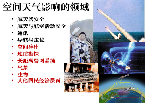 太陽上出現(xiàn)的耀斑和日冕物質(zhì)的拋射等劇烈活動,給地球磁層,電離層和中高層大氣,衛(wèi)星運(yùn)行和安全,以及人類健康,帶來嚴(yán)重影響和危害,通訊也會受到損害。人們把這種由太陽活動引起的短時間尺度的變化,稱之為空間天氣(大于30公里)。